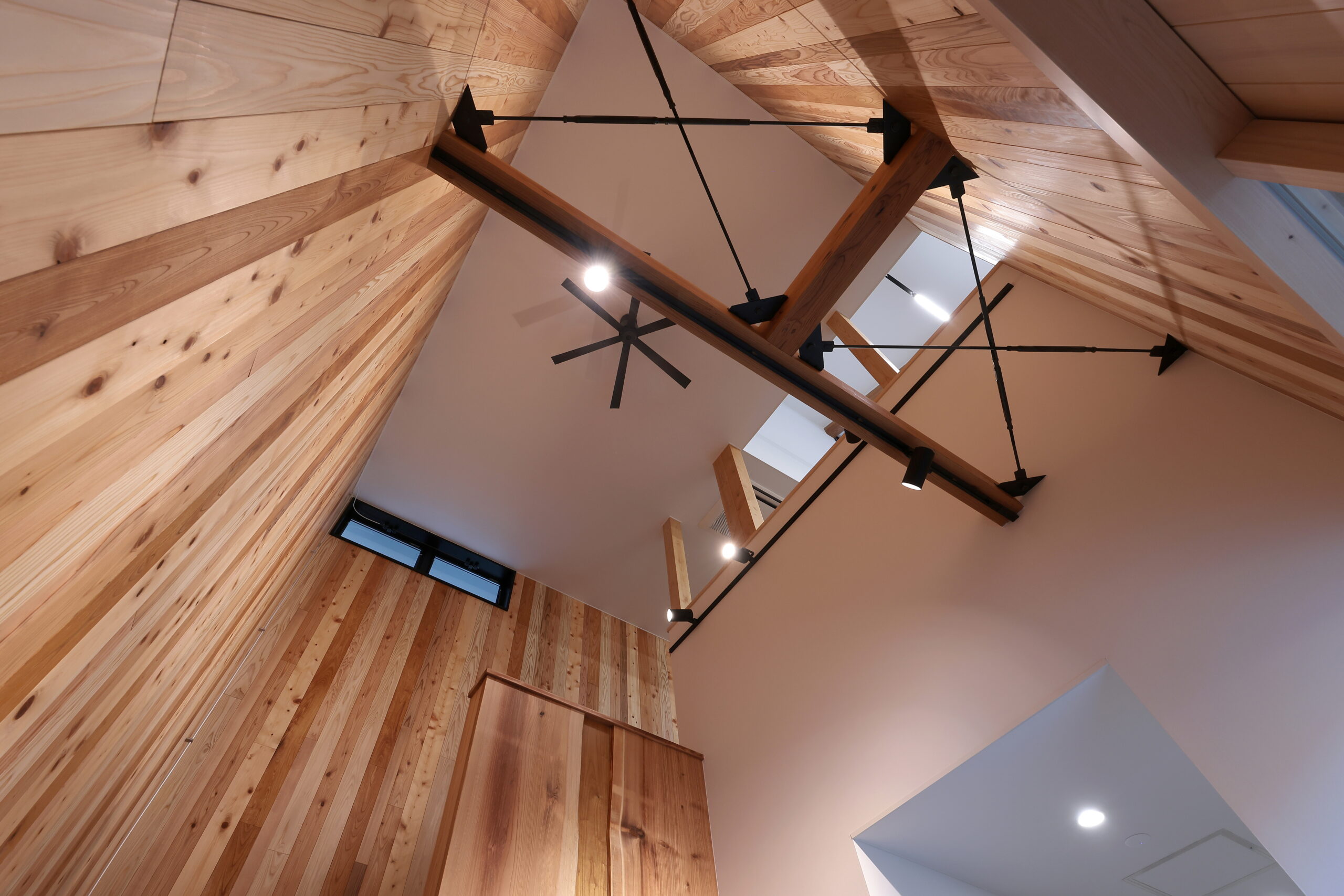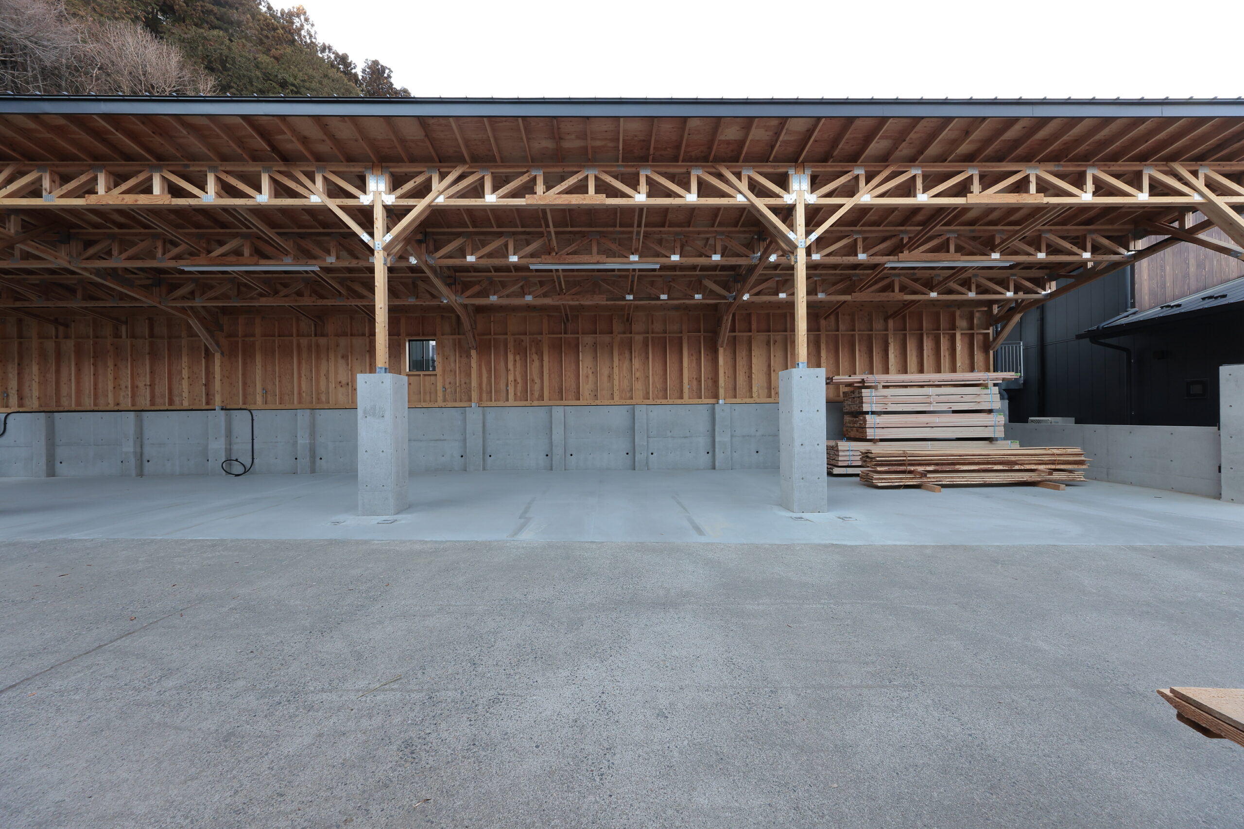 備考: 2×4材による平行弦トラスを使用。国産材使用率100%(合板以外は群馬県産材)。